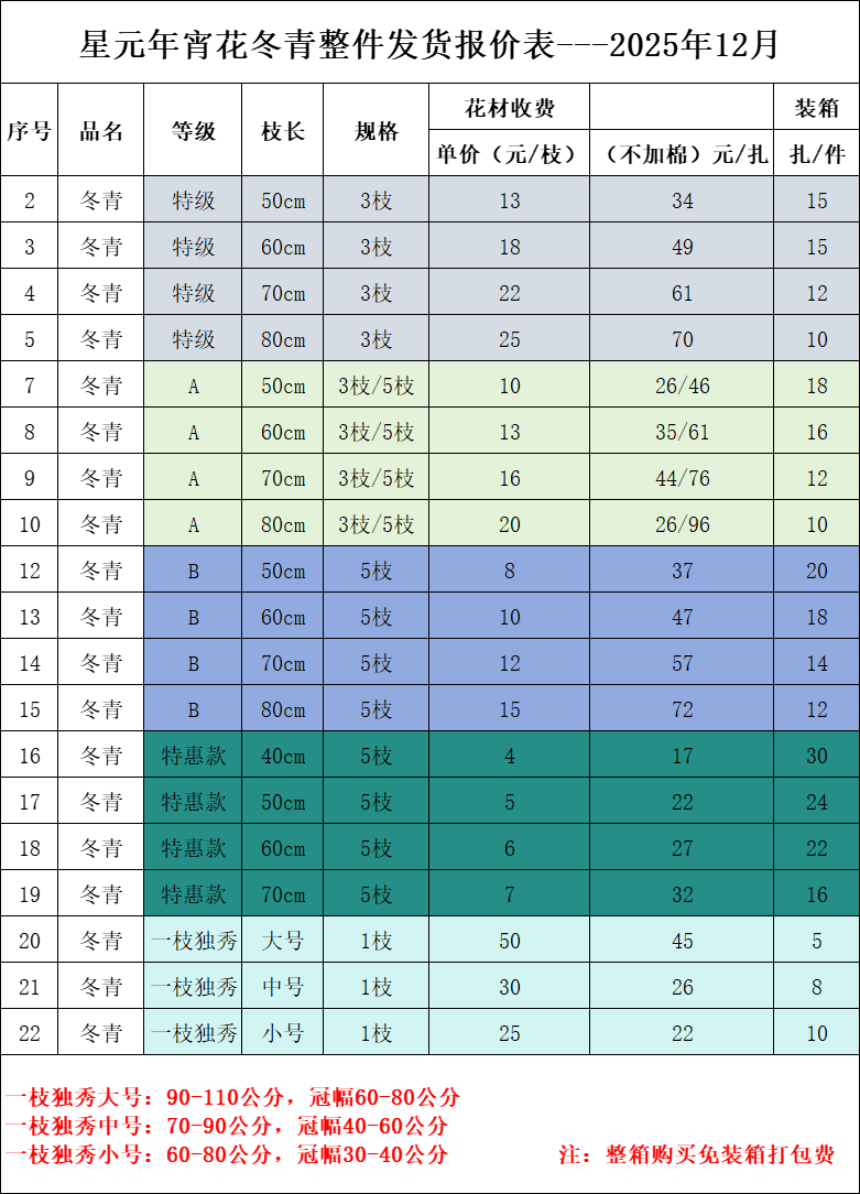 昆明联谊锦都花卉批发冬青整件12月12号 报价